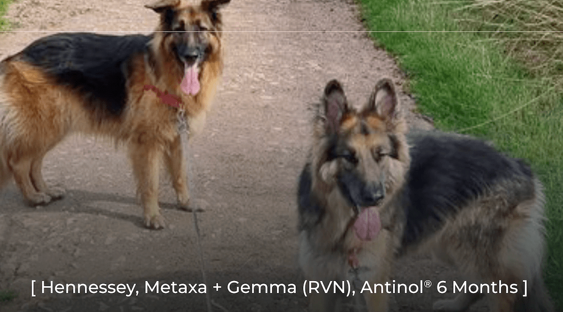 Deutsche Schäferhunde sind eine Rasse, die anfällig für Mobilitätsprobleme ist. Gemma hat Antinol® ausprobiert und jetzt können Hennessey und Metaxa tatsächlich zusammen laufen!
