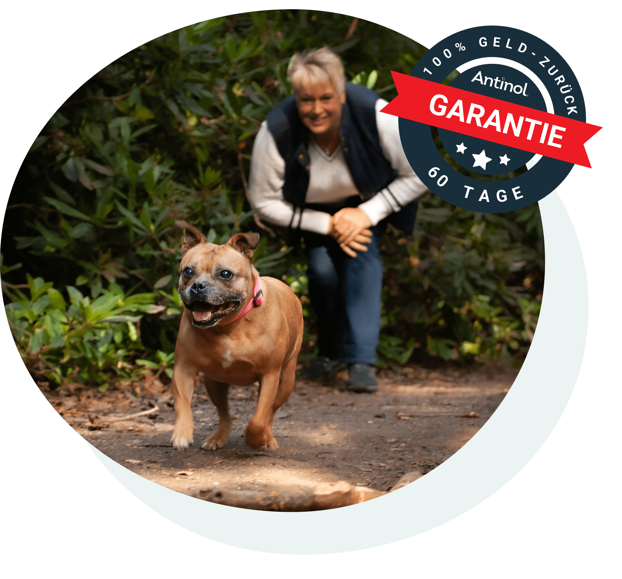 Wir sind so zuversichtlich, dass Sie mit Antinol einen Unterschied in der Mobilität Ihres Haustieres feststellen werden, dass wir es Ihnen garantieren.