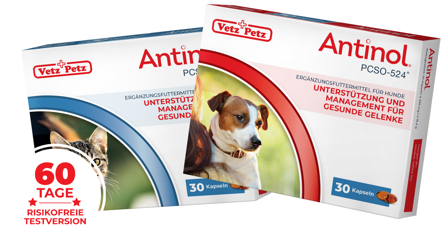 Wir sind davon überzeugt, dass Antinol Ihrem pelzigen Freund zu neuem Schwung verhelfen wird. Es ist mehr als nur ein Nahrungsergänzungsmittel – es ist natürlich hocheffektiv und wissenschaftlich untermauert.